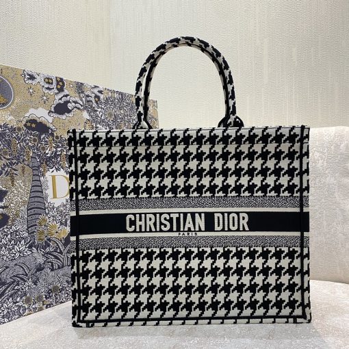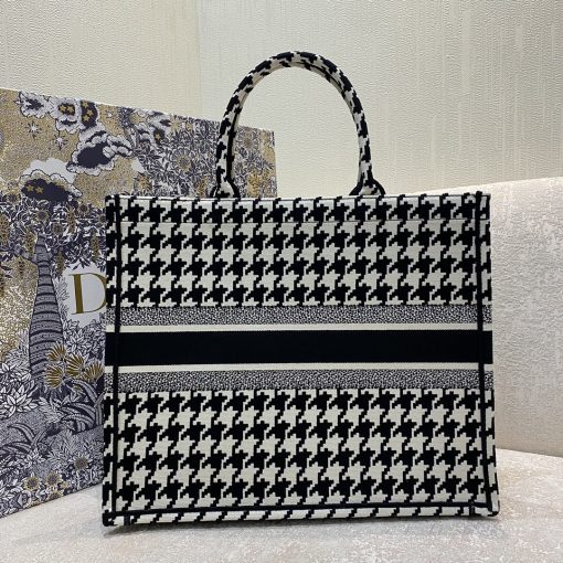 Christian Dior Large Dior Book Tote Black Houndstooth Embroidery. Black/White. For Women Women’s Handbags. Shoulder Bags. 42cm CD
