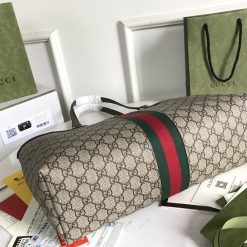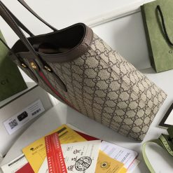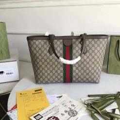 A classic combination of the House’s most defining codes the GG motif and Web stripe the world of Ophidia continues to evolve. incorporating new shapes and silhouettes each season. With recognizable design elements in a practical new shape. this new medium sized tote is topped with Double G hardware. Thanks to its long handles. the style can also be carried as a shoulder bag.